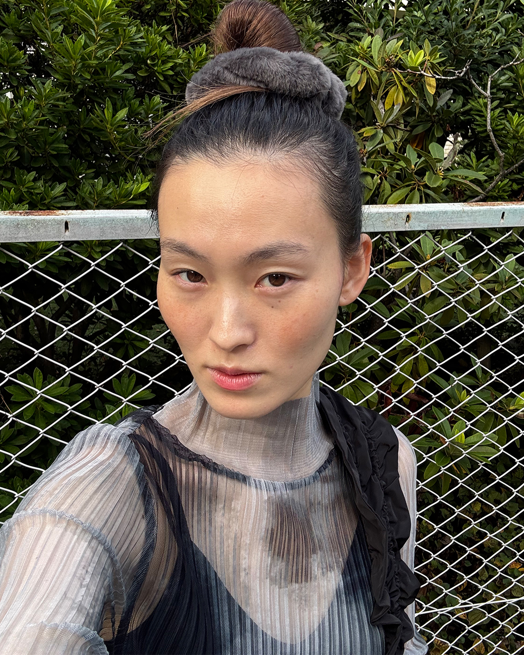 【ESTHE】High Neck Mesh Pleated Top