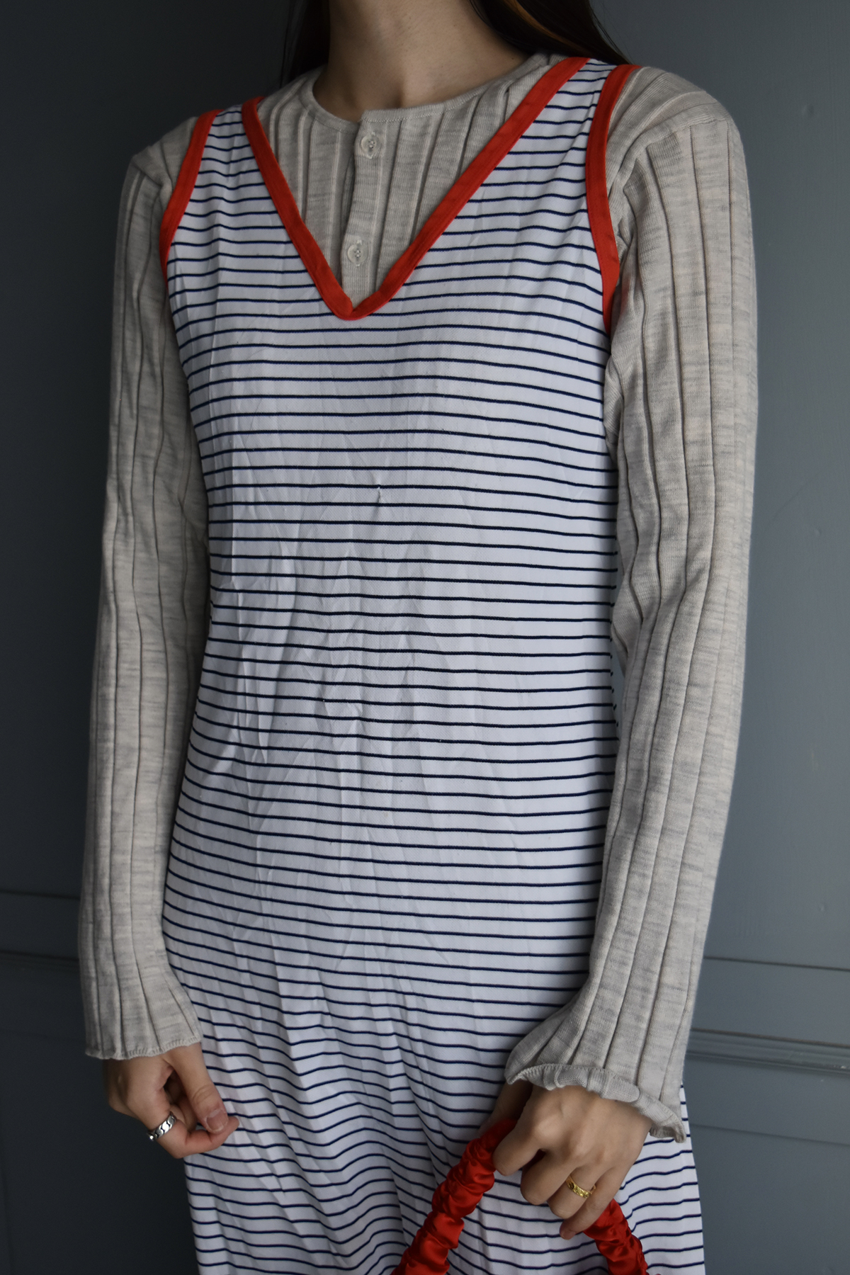 採寸表記に1~2cmほどの誤差が生じてしまう場合がございます。