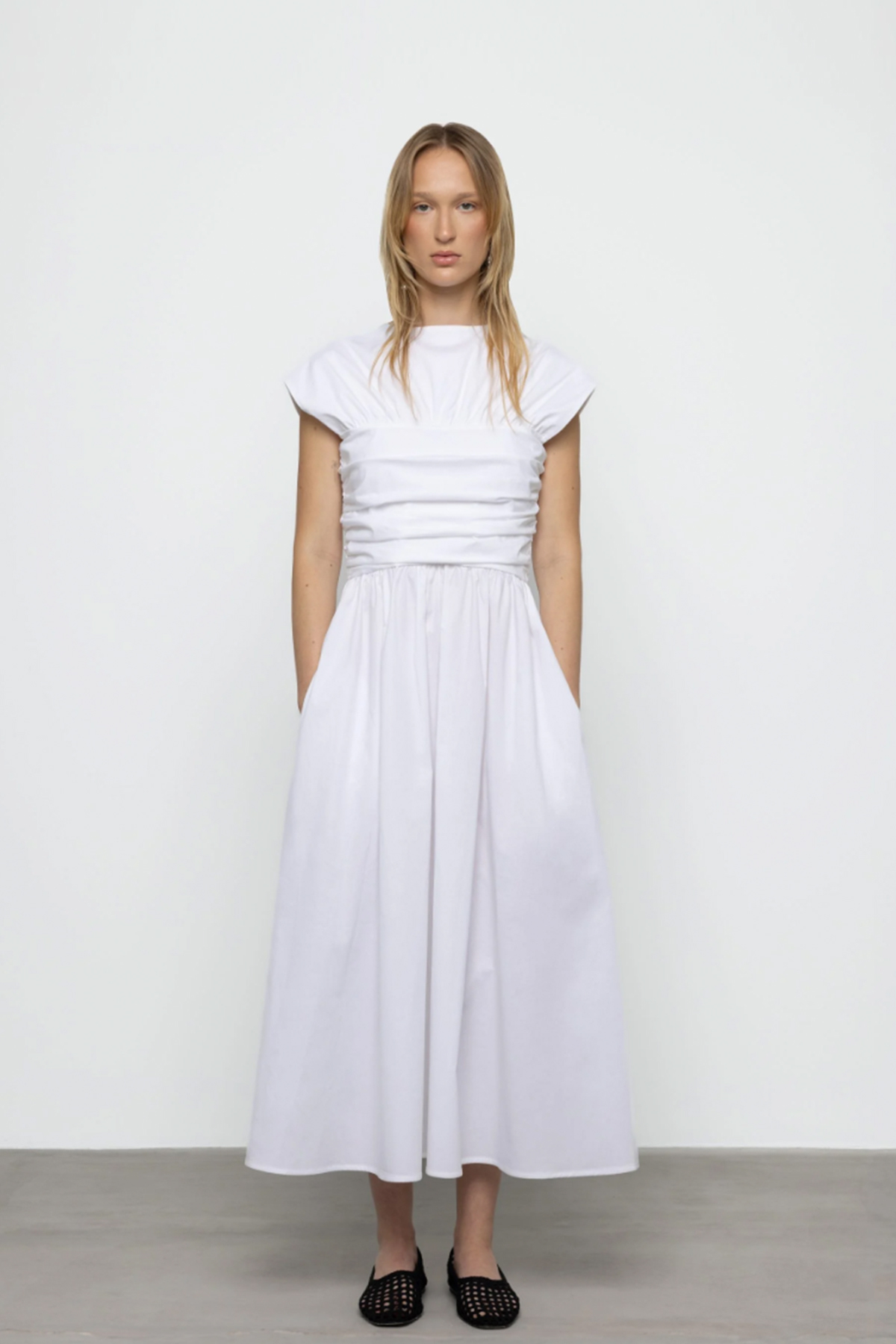 【ESTHE】Poplin 2-Way Ruched Maxi Dress